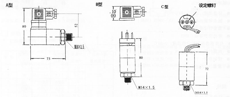 ◇ 主要技术性能: 环境温度:-25~80℃ 外壳防护等级:IP65 重复性误差:小于2% 与传感器接触的介质温度:0~80℃ 抗震性能:max 40m/s2 触点容量:AC 220V 3A 500W(阻性) 使用寿命:1×105 重量:0.23kg